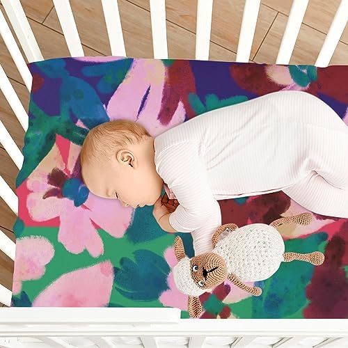 AIXIWAWA Gouache Painting Crib Sheet for Baby Toddler, Fitted Breathable and Soft Mini Playard Sheet Pack n Play Crib Mattress