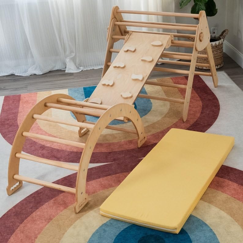 Pickler Triangle Set, Indoor Playground, Large Montessori Gym, Kids playroom, Rocker with Mattress, Toddler Furniture, Climbing Toys (Set 3 in 1+Pillow(L),Without Pillow)